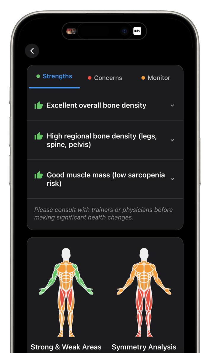 Clear insights on fat, muscle, visceral fat, bone, and metabolism - with clinical accuracy.