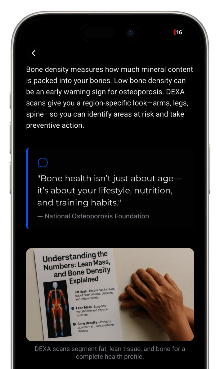 The Body Insight app breaks down every metric — what it means, why it matters, and how you can improve it - so you never get lost in the numbers.